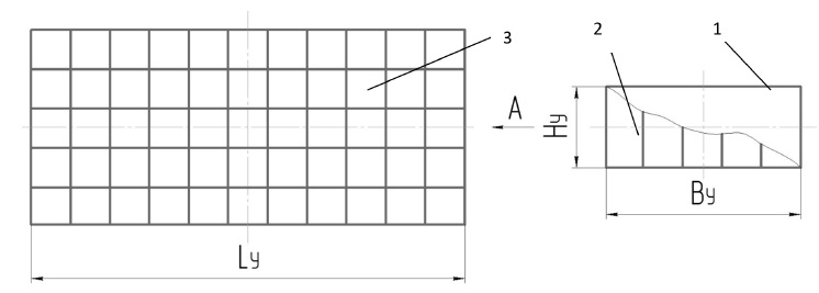 Fig. 6. General view of the impurity collector: 1 – metal tray; 2 – partition; 3 – cell