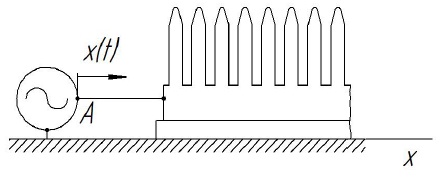Рассматриваемая система совершает вынужденные колебания. В данном случае они вызываются не заданными силами, а возникают благодаря приведению в движение по заданному закону точки системы, то есть точки на гребенке. Такое возбуждение будет являться кинематическим. При этом задачу о кинематическом возбуждении нетрудно свести к задаче о силовом возмущении. На данном этапе составления расчетной схемы пренебрегаем силами трения и силами сопротивления, связанными с воздействием на колос.