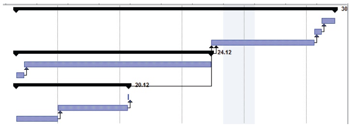 Fig. 2. Project diagram fragment for assembling a product in MS Project