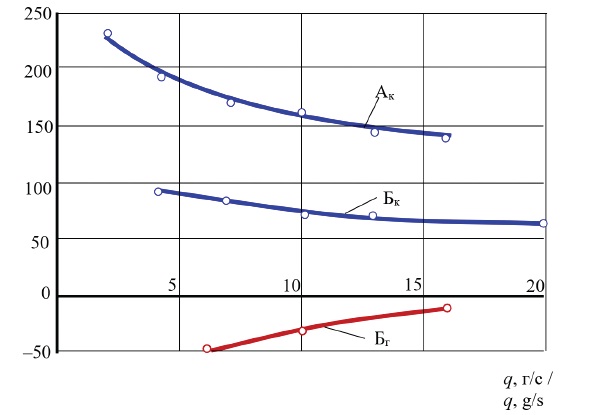 depending on the consumption q of the thickened preservative: Aк – for cold coil A; Бк – for cold coil Б,