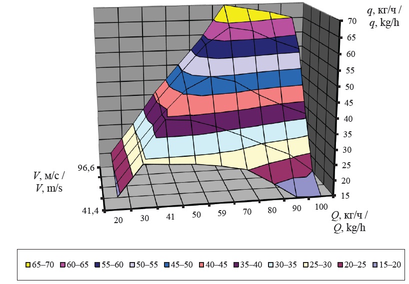Подача сырья Q, кг/ч /Raw materials feed Q, kg/h