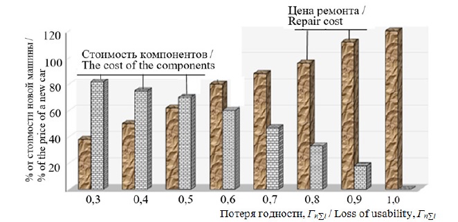 В доперестроечный период государство выделяло потребителям техники субсидии на поведение капитального ремонта − около 50 % от стоимости новой машины. В капитальный ремонт сдавали технику с потерей годности не менее 50 %. По этой причине, с учетом того, что значительная часть деталей, которые можно было восстановить, заменялись новыми, стоимость проведения технологических операций (разборка-сборка, моечно-очистные, дефектовочные и прочие работы) составляла около 20–25 %, цена ремонта существенно превышала 50 %. Ремонтные предприятия стремились экономить, снижая затраты на различные технологические операции ремонта, от чего страдало качество ремонта. В значительной мере по этой причине после перехода на рыночную экономику большинство заводов обанкротилось. Тем не менее потеря годности ремонтируемой машины не превышала Гп∑0,4... Гп∑0,523.