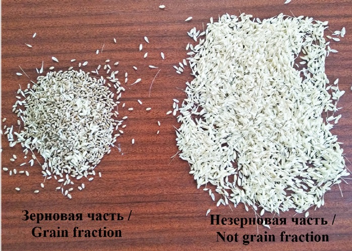 Исследование зерна, выделенного из колосьев и собранного в соответствующую емкость экспериментальной молотильной установки, показало, что способ пневматического обмолота обеспечивает эффективное отделение легкой незерновой фракции от зерен (рис. 9).