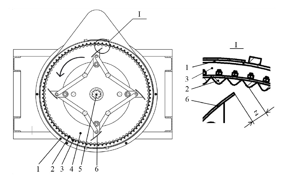 Fig. 4. Scheme of the threshing camera of the experimental device: 1 – case; 2 – concave;