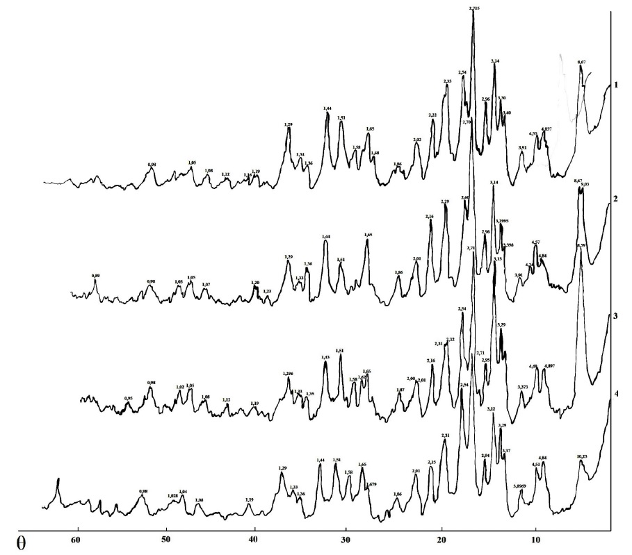 - Oranska O.I., Gornikov Yu.I. X-Ray Diffraction and Thermal Studies on Some Food and Cosmetic Bentonite Clays. Khіmіya, fіzika ta tekhnologіya poverkhnі = Chemistry, Physics and Technology of Surface.2019; 10(1):13-21. (In Ukr.) DOI: https://doi.org/10.15407/hftp10.01.013