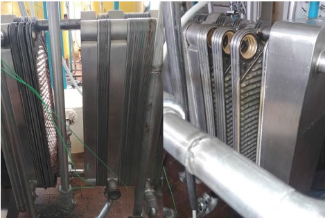 Fig. 3. Pasteurizer with a set of heat transfer plates during the experiment