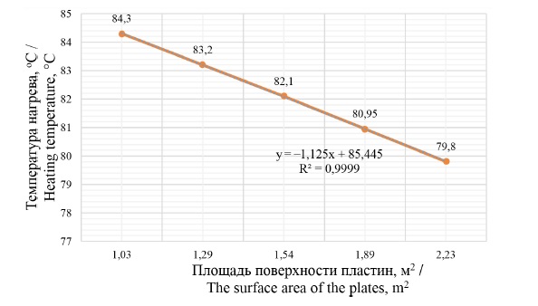Fig. 5. Graph of pasteurization temperature dependence on heat-exchange plate area