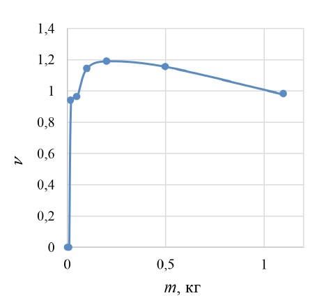 Для упругого состояния полисиликона SP на основании данных таблицы 1 построен график изменения коэффициента Пуассона ν в зависимости от массы падающего груза (рис. 7) при условии, что где
