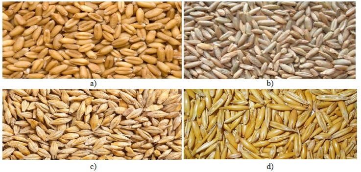 Fig. 3. General view of the grains of the main crops: a) wheat grains; b) rye grains;