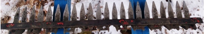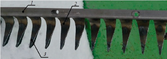 Гребенки, применяемые на серийных очесывающих устройствах «Сибирь» (рис. 4), защищены патентом № 2439871 [13]. Технологический параметр между смежными рабочими элементами, на кромке которых выполнены углубления, позволяющие увеличить площадь контакта семенного материала, имеет увеличенный размер, что определяет повышенные потери семян в виде неполного очеса убираемой культуры в результате распределения стеблей и остатков семенной коробки культурного растения между рабочими элементами.