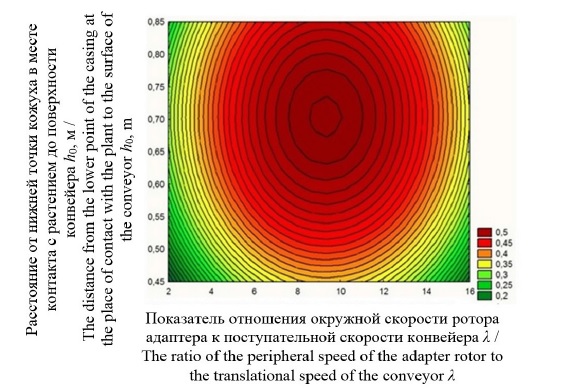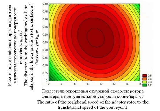 rotor to the translational speed of the conveyor λ and the distance from the working body of the adapter in