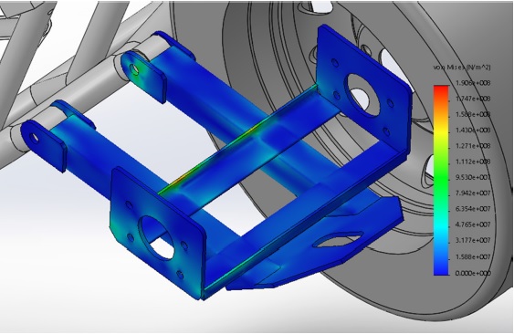 Fig. 6. Von Mises dynamics stress map for FEM analysis of the front suspension