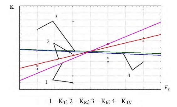 В качестве функции отклика использовался показатель утилизируемости сельскохозяйственной техники Fy. В качестве исследуемых факторов выбраны групповые показатели КM, КT и КTC.