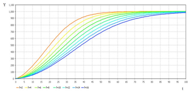 Результаты некоторых модельных экспериментов по изучению влияния различных параметров на динамику процессов ИВ приведены на рис. 3–5. Пример имитационного эксперимента с системно-динамической моделью ИПД приведен на рис. 6.