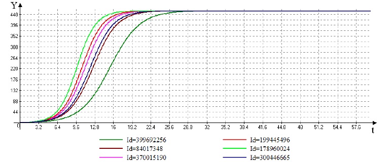 В экспериментах на материале фактических статистических данных имитировалось по отдельности распространение ИВ от семи различных пользователей, а также одновременно с нескольких узлов реальной социальной сети (рис. 8).