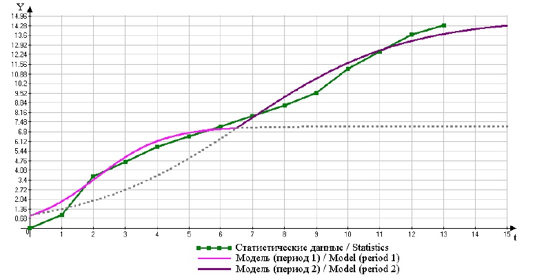 Отметим, что результаты моделирования на основе системно-динамического и агентного подходов совпали с достаточной степенью точности (рис. 7). Коэффициент согласования между моделями составил 94 %, со статистическими данными – 92 %.