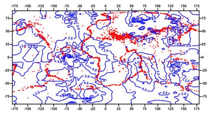 Если подходить к вопросу о построении математической модели напряженно-деформированного состояния литосферы в глобальном масштабе с теоретических позиций, то в первую очередь необходим контроль правильности расчета напряжений каким-либо параметром, значения которого в глобальном масштабе известны по данным наблюдений.