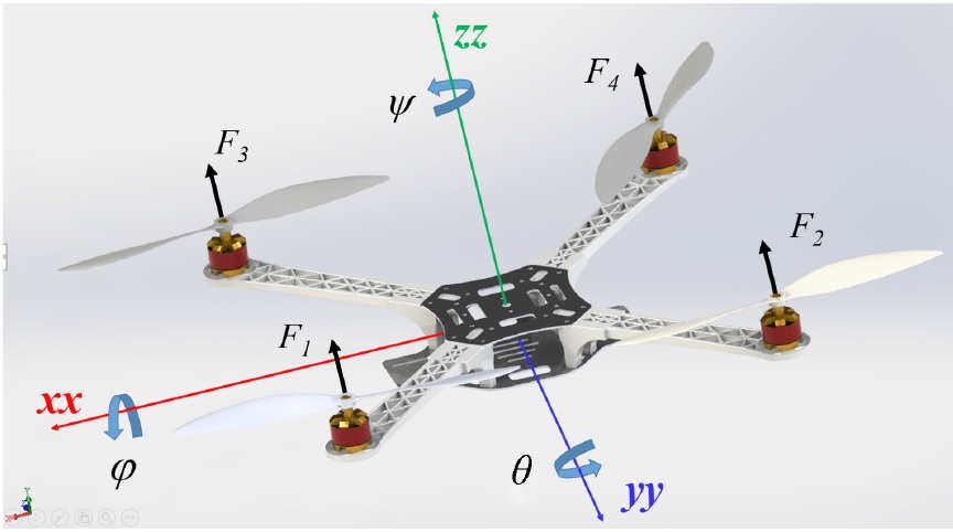 Fig. 3. The quadcopter coordinate systems