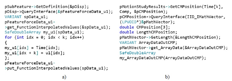 Fig. 10. Program access to SolidWorks Motion data: