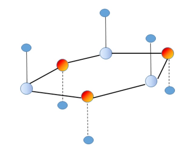 Рис. 4. Схематичное распределение зарядов в элементарной ячейке графена
