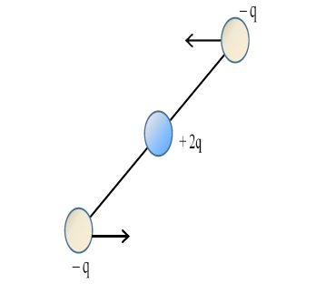 Для качественного описания данного явления вновь обратимся к рис. 2. В случае образования пары в сотовой ячейке графена расположение отрицательного заряда в верхнем электроне смещено в противоположную сторону от среднего положительного заряда ячейки по сравнению с нижним электроном. Схематично распределение зарядов представлено на рис. 4.