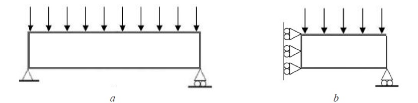 We consider an MBB (Messerschmitt-Bölkow-Blohm) [20; 21] beam subject to a distributed load as an example for this numerical demonstration (Fig. 1). Figure 1a shows a full design domain of the studied beam with all boundary conditions while Figure 1b illustrates the equivalent symmetry boundary conditions of a half beam.