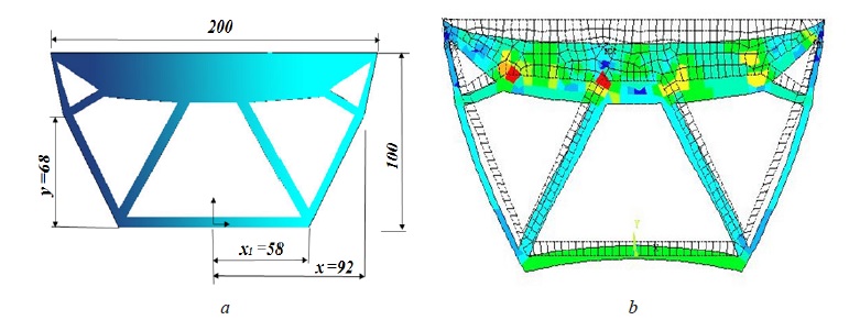 a) geometrical model; b) von-Mises stress distribution