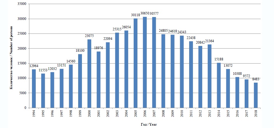of persons awarded degree of Candidate of Sciences in 1994–2018