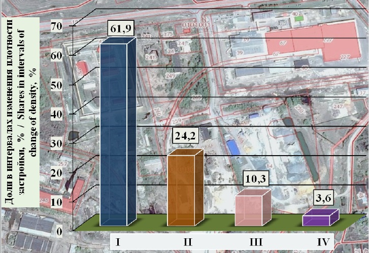 Результаты исследований фактической плотности застройки РОБ предприятий сельхозпроизводителей показали, что она в 65 % случаев ниже минимальной плотности застройки, установленной сводом правил24. Фактическая плотность застройки РОБ находится в интервале 5,1–66,0 %. При этом фактическая средняя плотность застройки предприятий технического сервиса сельхозпроизводителей составила 19,7 %.
