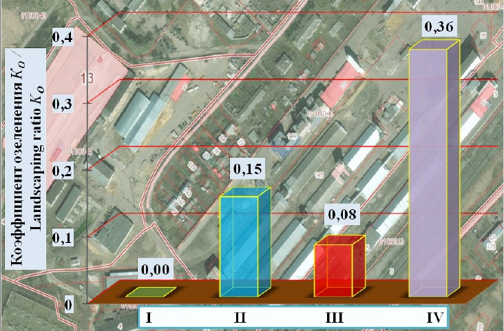 Определено среднее значение коэффициента озеленения РОБ предприятий технического сервиса сельхозпроизводителей. Оно составило 0,08, что характеризует рассматриваемые площадки с экологической точки зрения как не соответствующие современным требованиям.