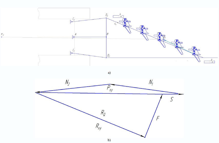 Обсуждение и заключение. По итогам исследований можно отметить, что современные сельхозмашины являются многооперационными статически неопределимыми системами. Вследствие этого усложняется процесс их регулирования во время работы и становится практически невозможным проведение силовых расчетов без принятия дополнительных условий. Для упрощения, точности и наиболее наглядного представления поставленная задача решалась посредством анализа замкнутых силовых многоугольников, методика построения которых представлена как для условия равновесия в горизонтальной, так и в вертикальной плоскостях.