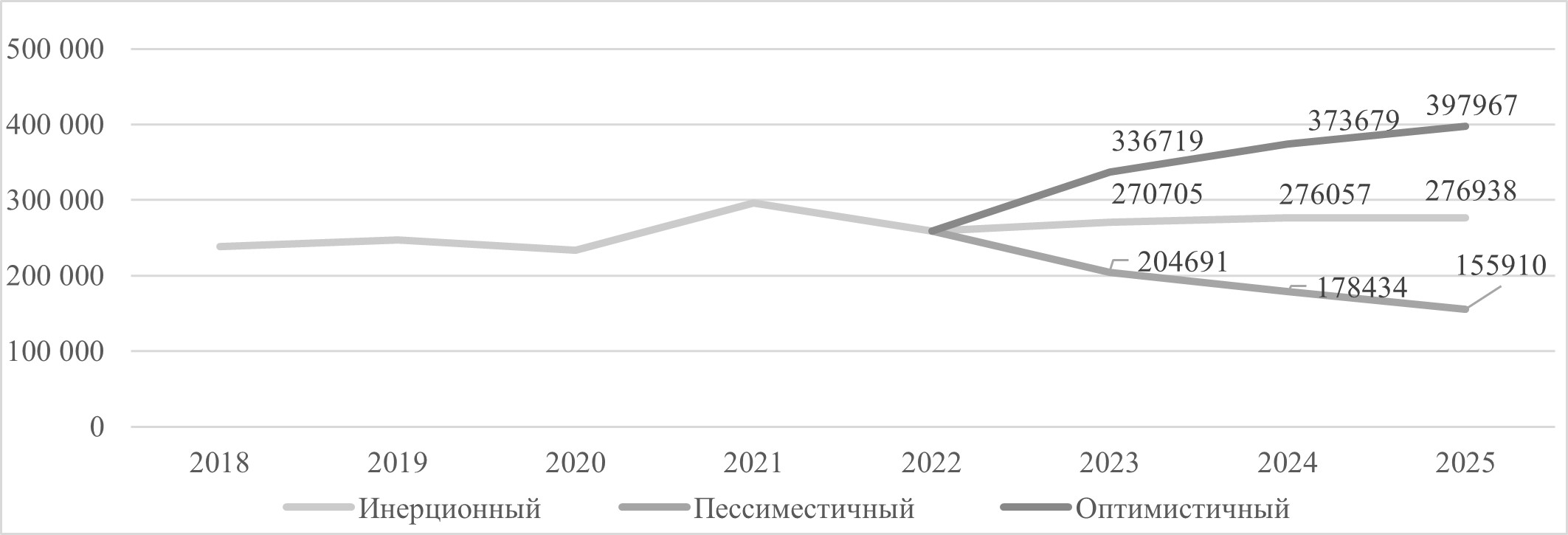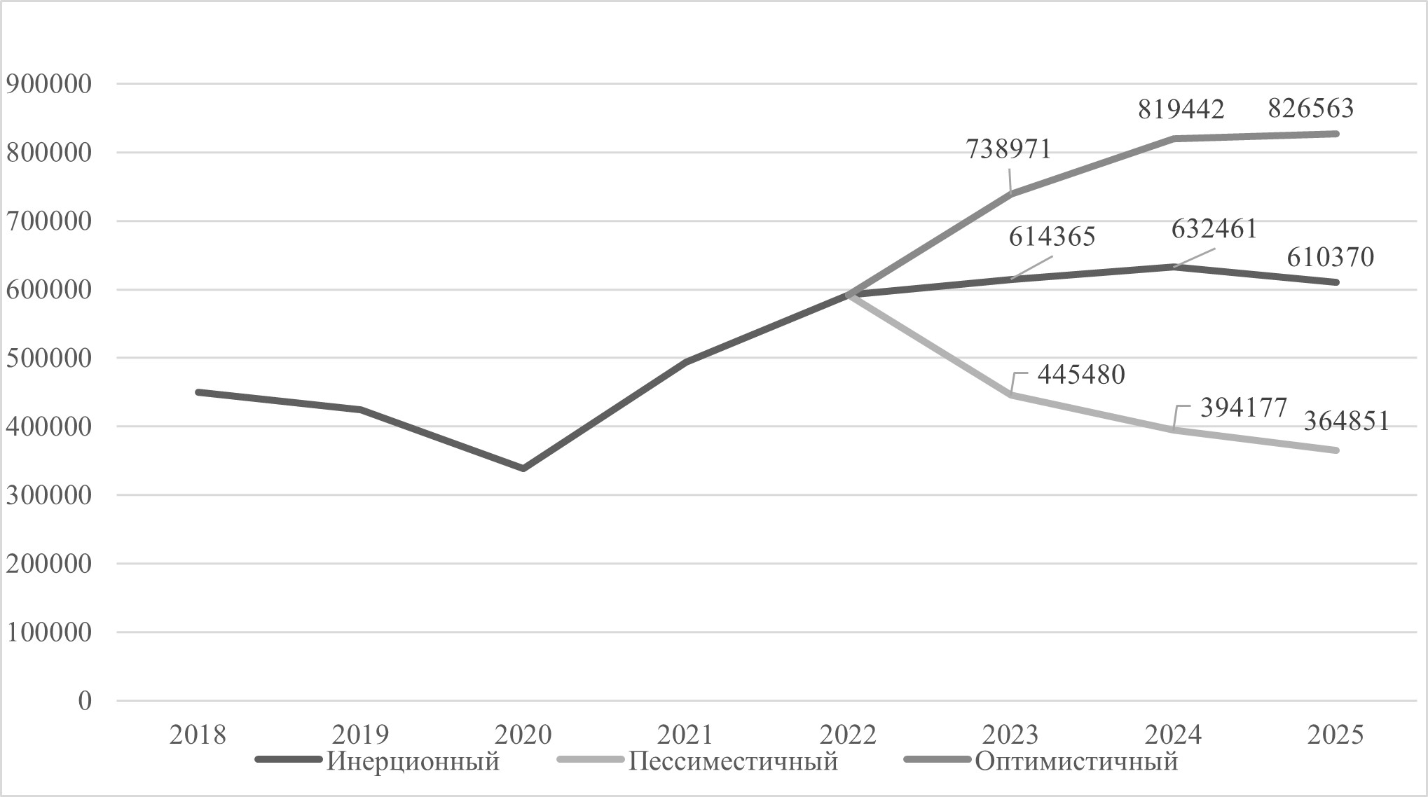 Рис. 2. Сценарии развития импорта Российской Федерации (млн долл. США)