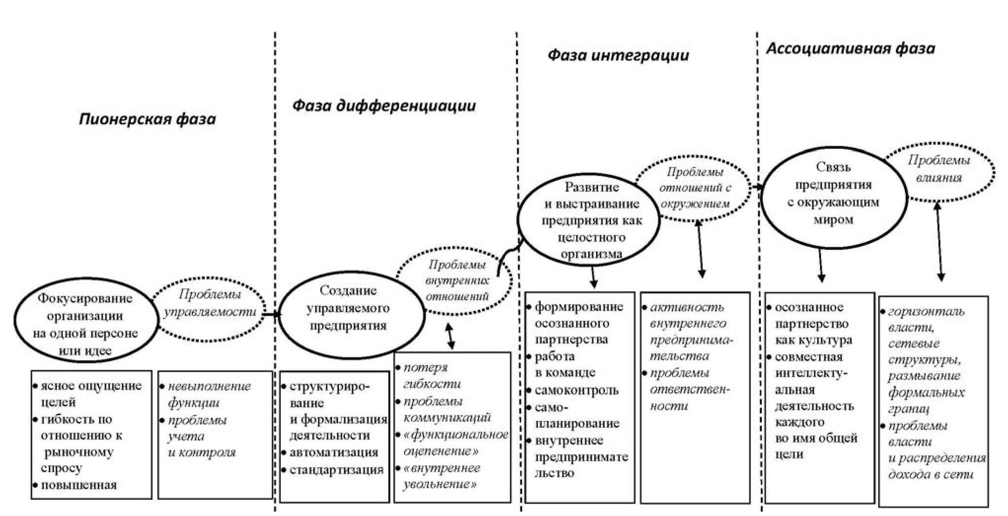 Для успешного развития отечественным предприятиям необходимо от организации деятельности по принципу «организация–механизм» перейти к организации деятельности по принципу «организация–организм», которая может расти и развиваться самостоятельно. Характеристики фазы дифференциации (когда деятельность организации структурируется и формализуется) компании должны качественно закрепить в своих организационных способностях.