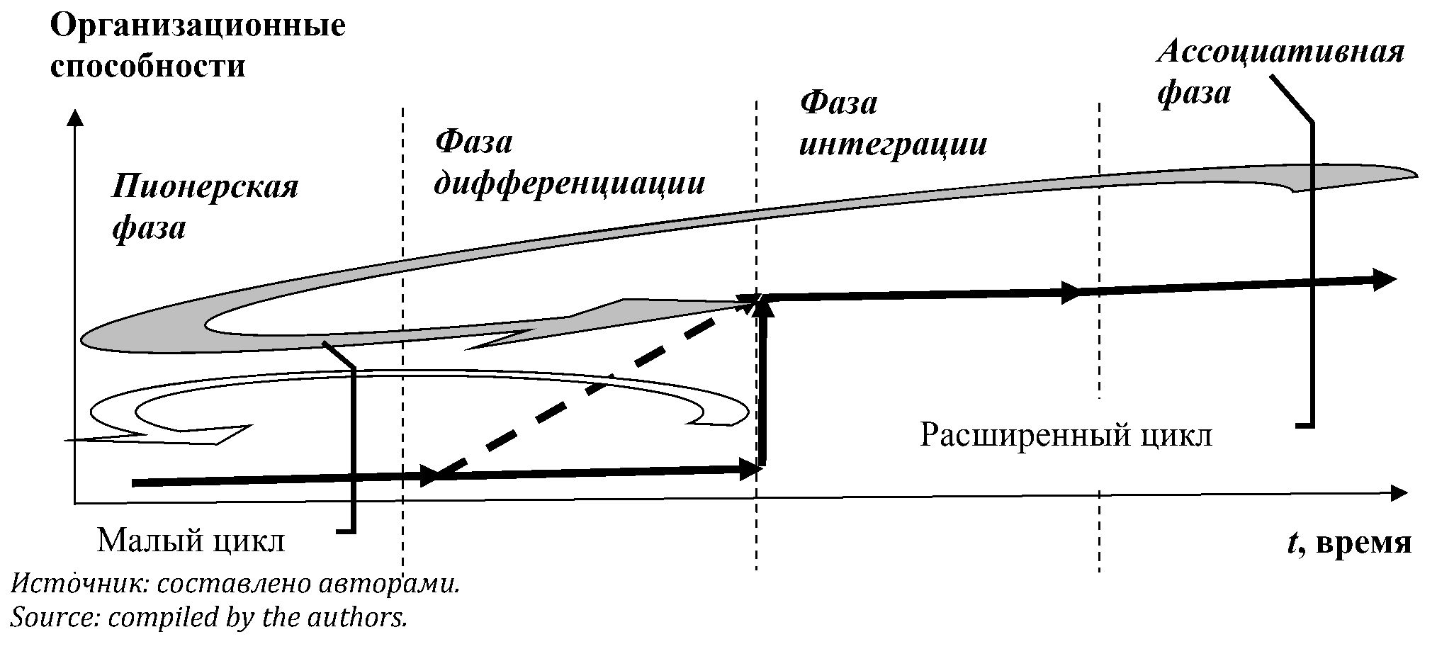 В этих случаях энергия организационных способностей пионерской фазы используется для достижения результатов и первой, и второй фаз, обеспечивая качество прохождения и сокращая период пребывания фирм на этих стадиях. В результате для компаний, осознанно развивающих организационные способности, открываются новые стратегические горизонты, что поддерживает конкурентоспособность предприятия в сетевую эпоху.