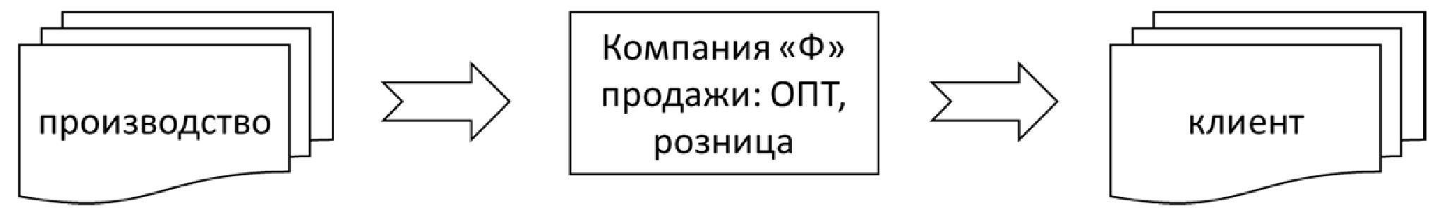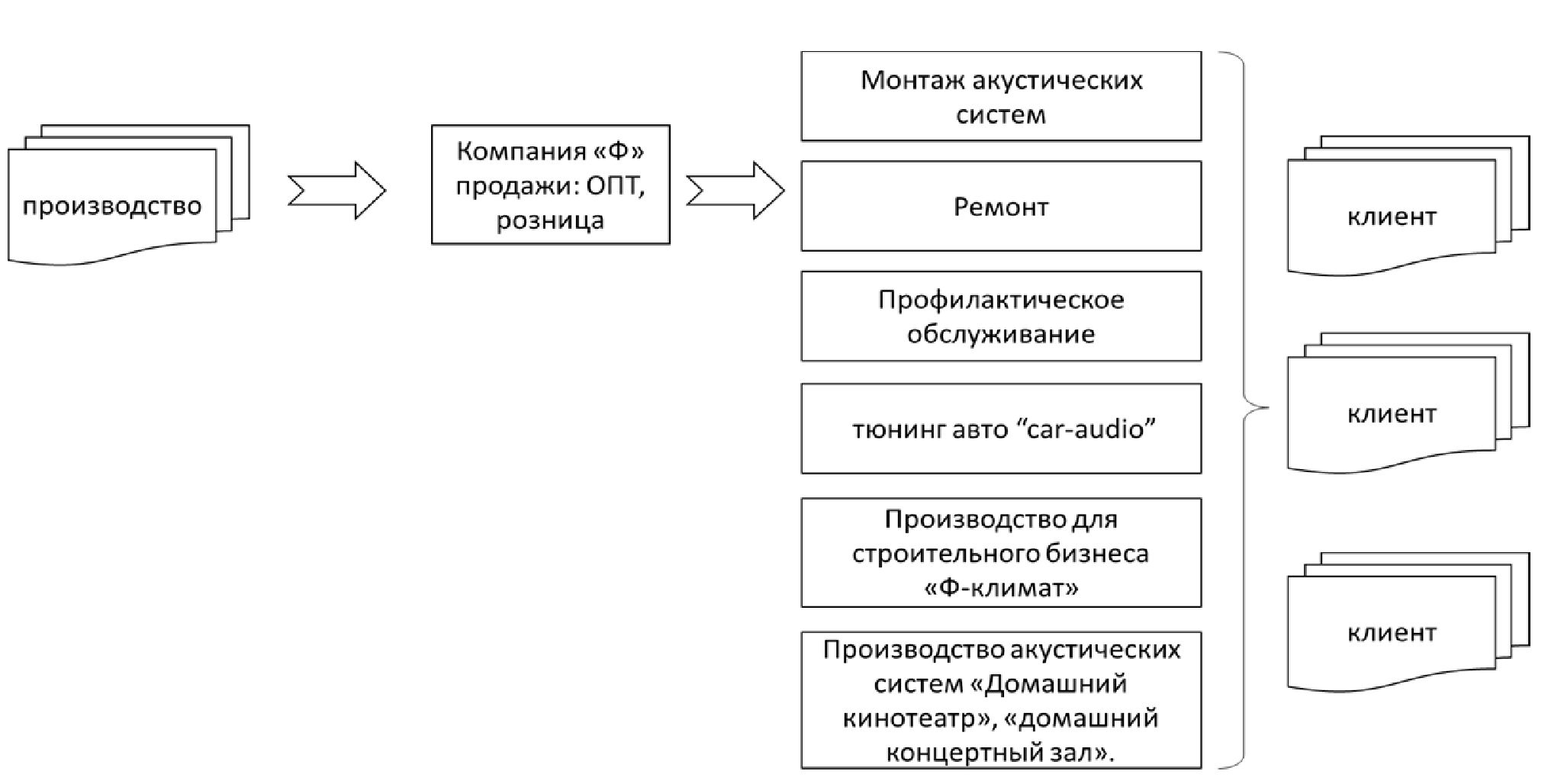 Результат апробации предложенного механизма преодоления кризиса фаз организационного развития путем формирования организационных компетенций с целью встраивания в ценностную цепочку представлен примером формирования внешней ценностной цепочки компании «Ф». Компания работает на рынке электроники и аудиосистем высокого класса с 1993 г.; изначально специализировалась на продажах (рис. 5, малый цикл), ведя активную политику встраивания в схемы продвижения товара производителями своей продукции (рис. 6, расширенный цикл).