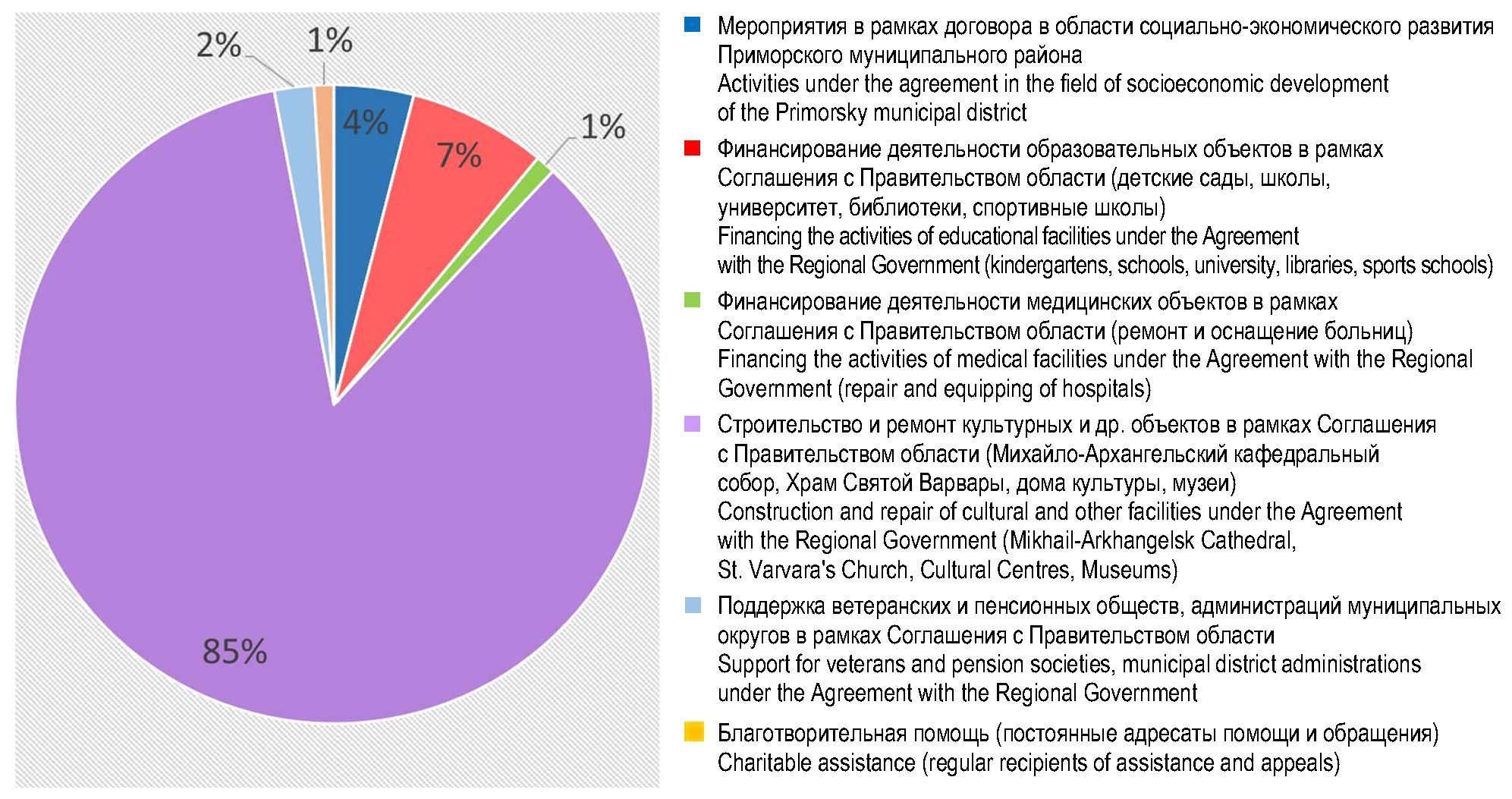 Figure. Distribution of costs by CSR directions of PJSC Severalmaz for social development of the Arkhangelsk region in 2020. Source: [23].