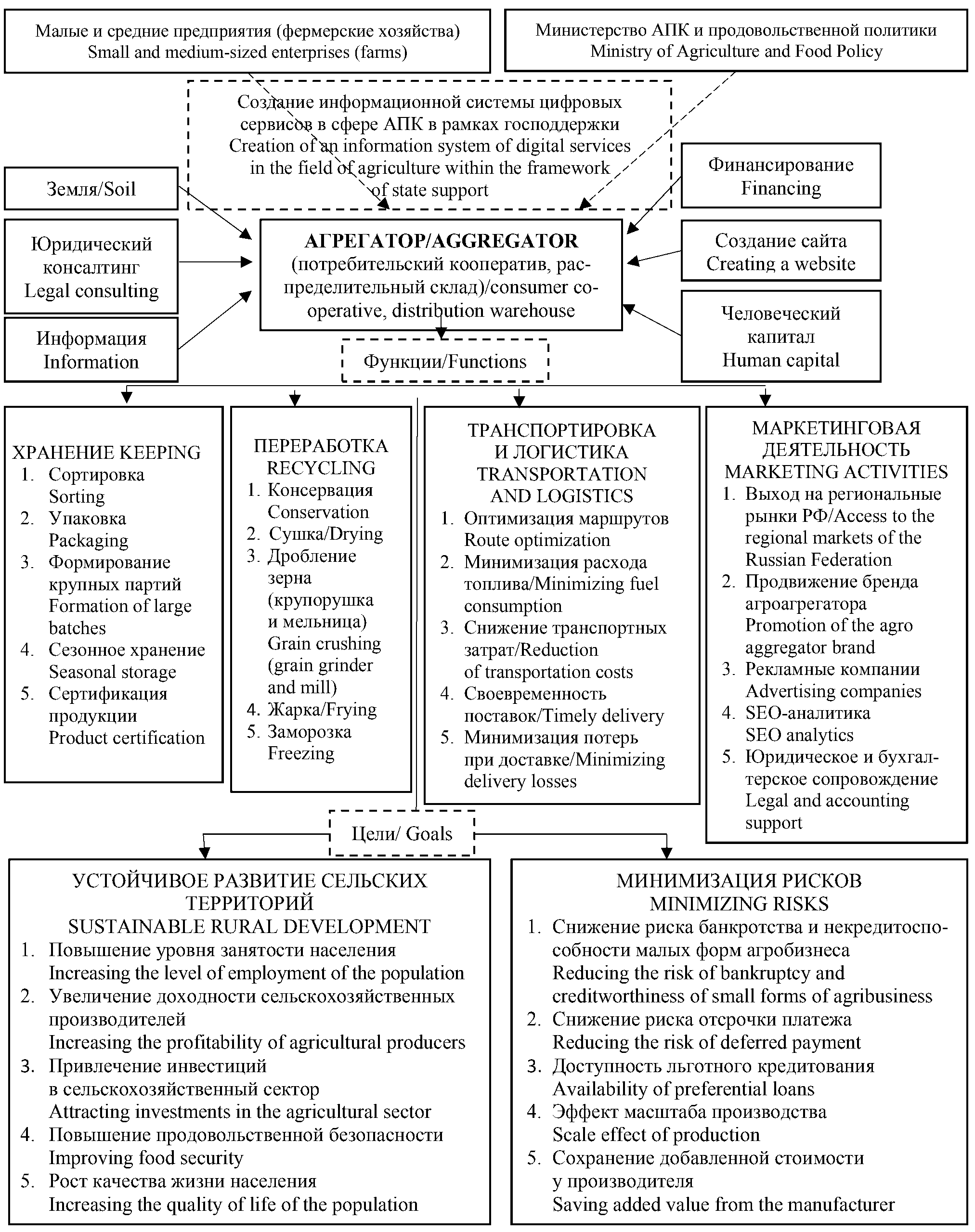 Relevance. Within the framework of the strategy for sustainable development of rural areas of the Russian Federation for the period until 2030, as well as the implementation of state support to small businesses that produce agricultural products in the territories of Novorossiya, the organization of the activities of agricultural aggregators is relevant.