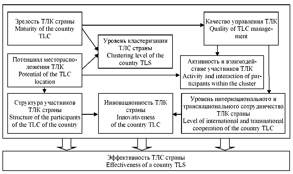 Согласно исследованиям Йенского университета имени Фридриха Шиллера (Friedrich-Schiller-University Jena) показатели эффективности деятельности на разных стадиях жизненного цикла выше у участников кластеров, чем у компаний вне агломераций [23]. Следовательно, большее количество ТЛК, их высокая концентрация должны обеспечивать рост эффективности ТЛС страны в целом.