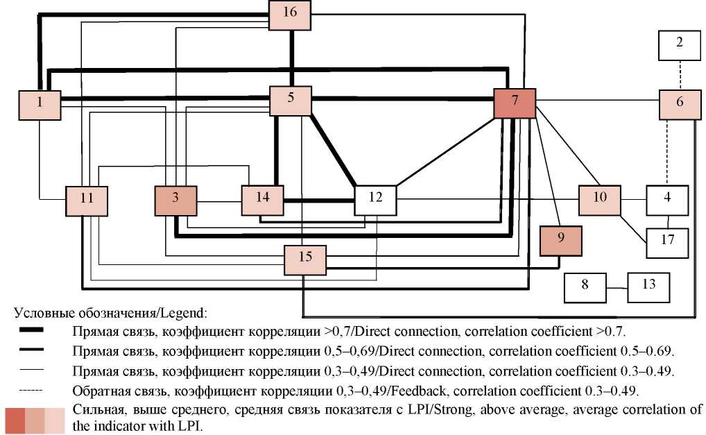 Также в рамках исследования представляют интерес некоторые выявленные взаимосвязи между показателями, которые отражены на рис. 4, за исключением очевидных и логически обоснованных зависимостей следующих показателей: