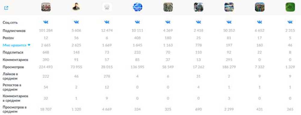 Source: compiled by the author based on the data from the Popsters service.