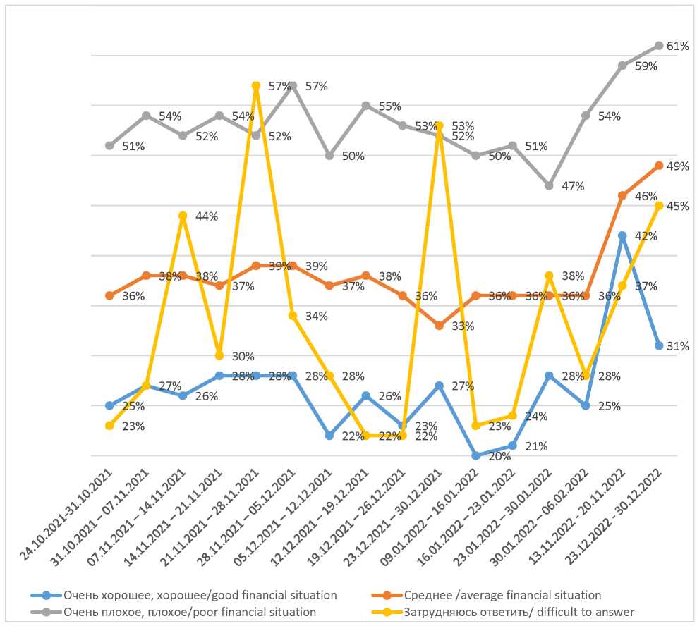 Fig. 6. Dynamics of anxiety level among groups that differ in their assessment of their own financial situation