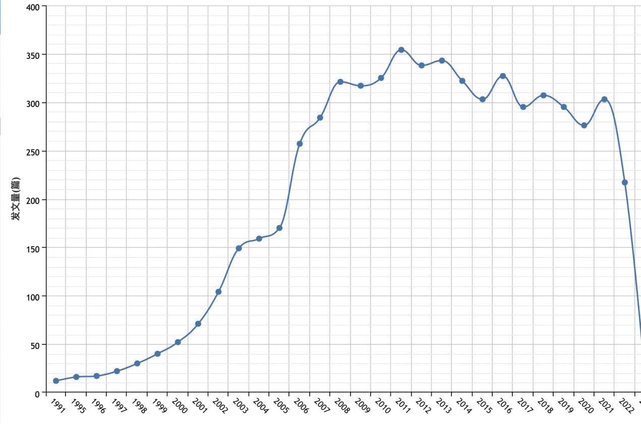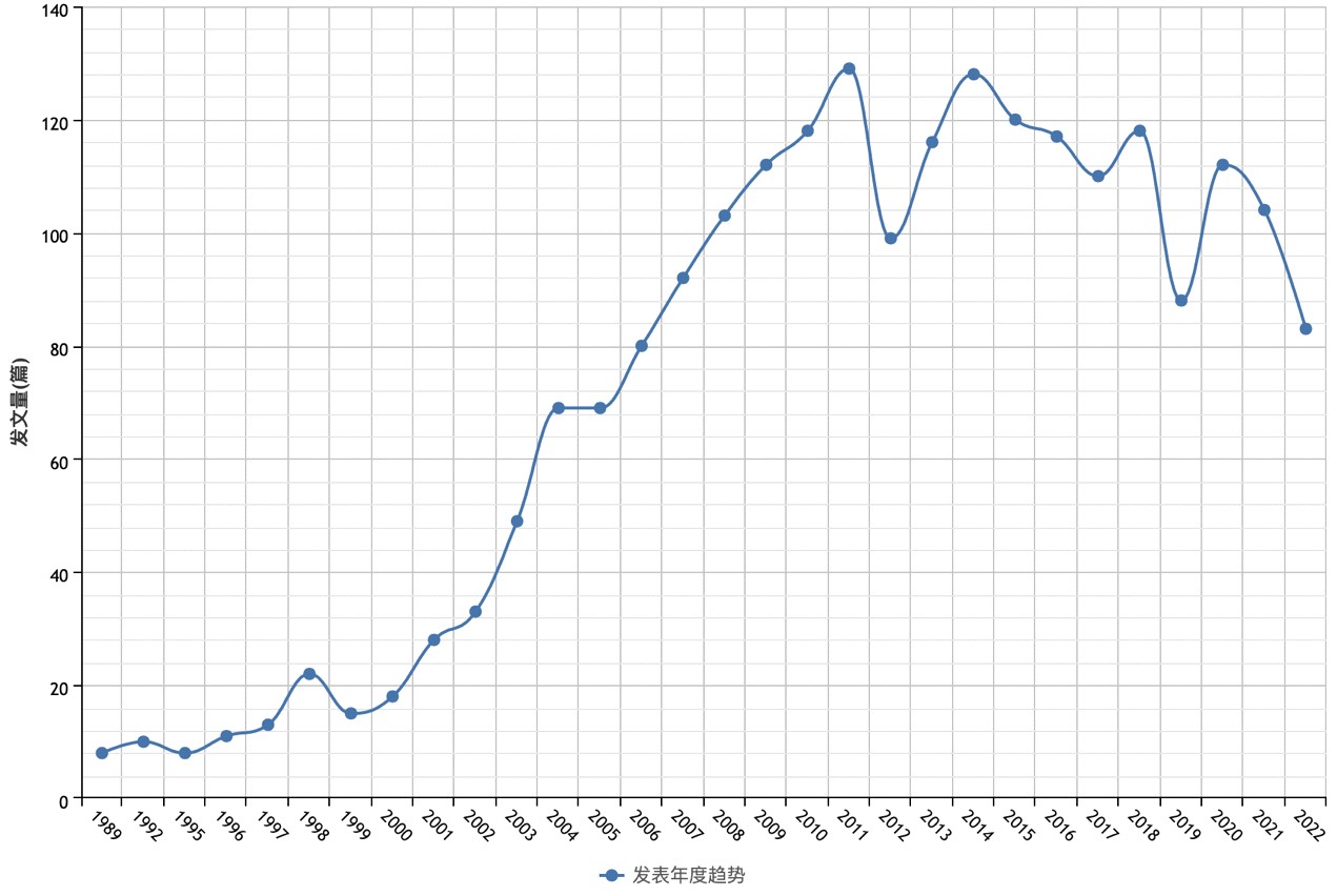 Количество исследований, связанных с Бахтиным, опубликованных в Китае в 1991–2022 гг.