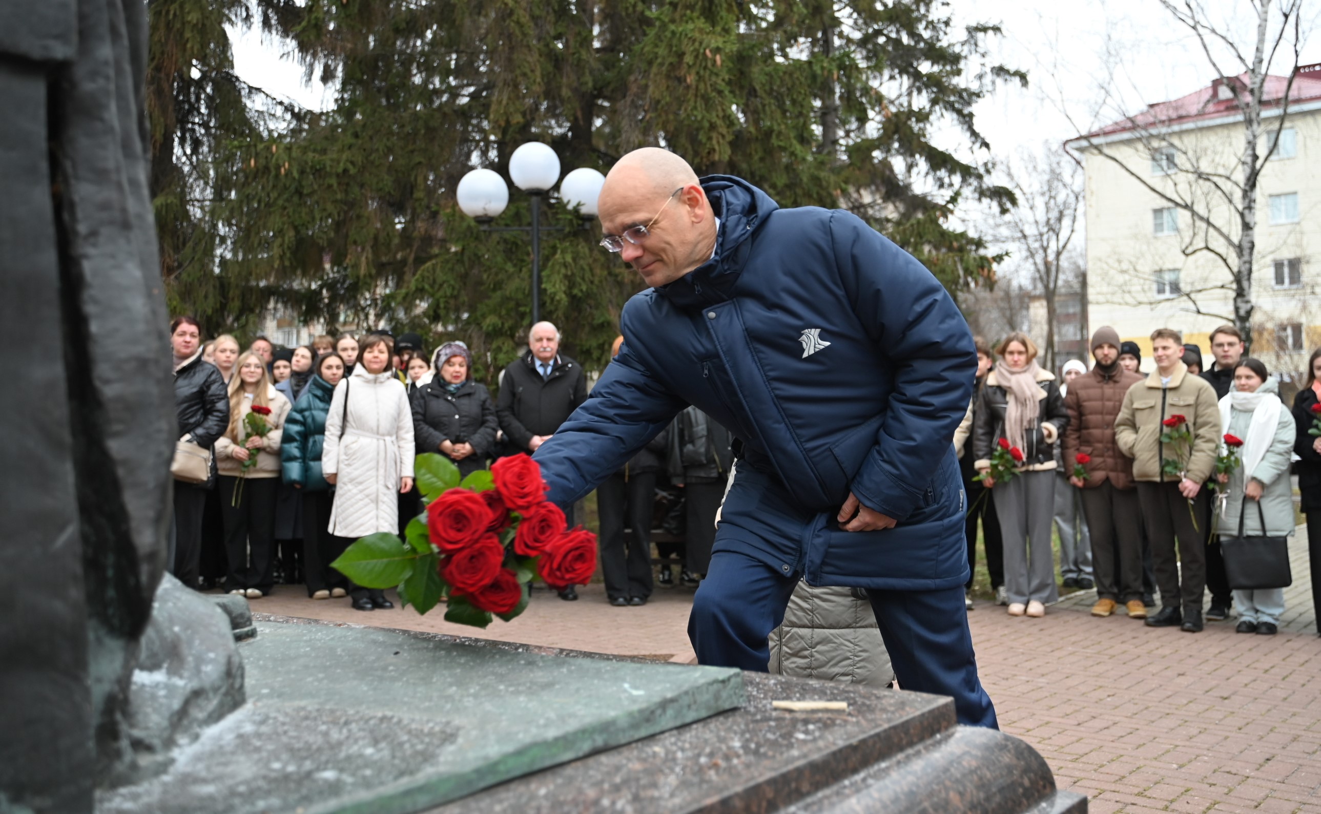 Р и с. 4. Ректор Д. Е. Глушко возлагает цветы к памятнику М. М. Бахтину