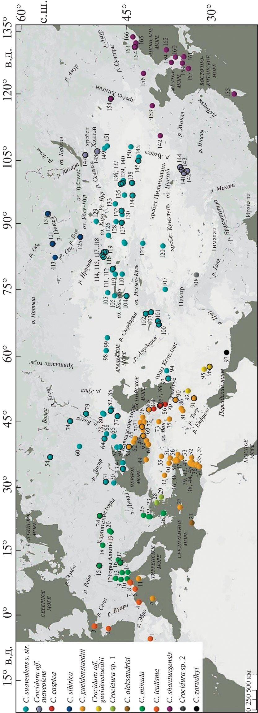 - Jiang X.L., Hoffmann R.S. A revision of the white-toothed shrews (Crocidura) of Southern China // Journal of Mammalogy. 2001. V. 82. №4. P. 1059–1079.