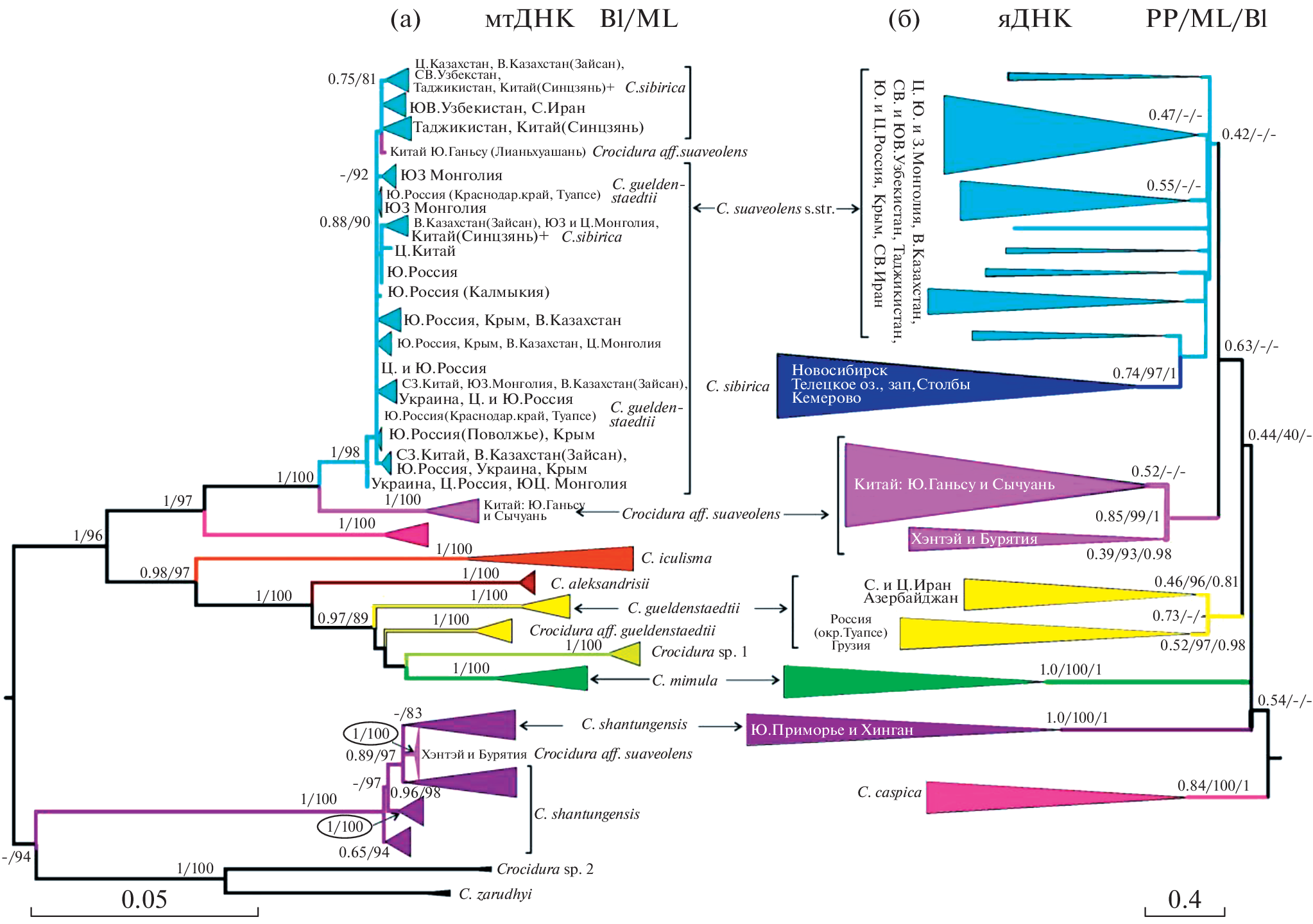 Мультилокусный анализ филогенетических отношений в видовом комплексе Crocidura suaveolens sensu lato: сравнение с митохондриальными данными