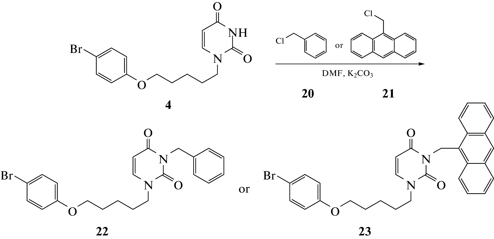 SYNTHESIS OF 1-[ω-(BROMOPHENOXY)ALKYL]-3-NAPHTHALENYLMETHYL DERIVATIVES OF URACIL AND THEIR ANALOGUES AS PROBABLE INHIBITORS OF HUMAN CYTOMEGALOVIRUS REPLICATION