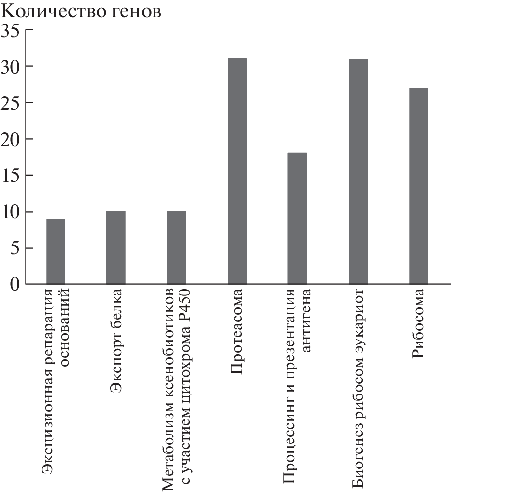 The effect of PARP1 knockout in HEK293 cells on the gene expression of DNA base excision repair (BER) proteins was studied. It was shown that the expression of all differentially expressed genes (DEGs) of BER was reduced by knockout. The expression of the DNA glycosylase gene NEIL1, which is considered to be one of the common “hubs” for binding BER proteins, has changed the most. The expression of genes of auxiliary subunits of DNA polymerases δ and ε is also significantly reduced. The PARP1 gene knockout cell line obtained is an adequate cell model for studying the activity of the BER process in the absence of PARP1 and testing drugs aimed at inhibiting repair processes. It has been found for the first time that knockout of the PARP1 gene results in a significant change in the level of expression of proteins responsible for ribosome biogenesis and the functioning of the proteasome.