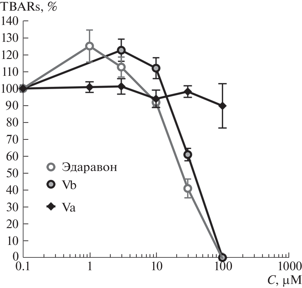 New hybrid structures based on memantine and edaravone molecules, in which the pyrazolone ring and adamantane fragments are linked by an alkyl linker, have been synthesized. It was found that in addition to the ability to block the intrachanal site of NMDA receptors, new hybrid compounds exhibit the property of blockers of the allosteric site of NMDA receptors, which is not inherent in memantine and edaravone preparations. The most active hit compound was determined, which, along with the properties of a two-site blocker of the NMDA receptor, exhibits a pronounced activity as an inhibitor of lipid peroxidation, similar to the drug edaravone.