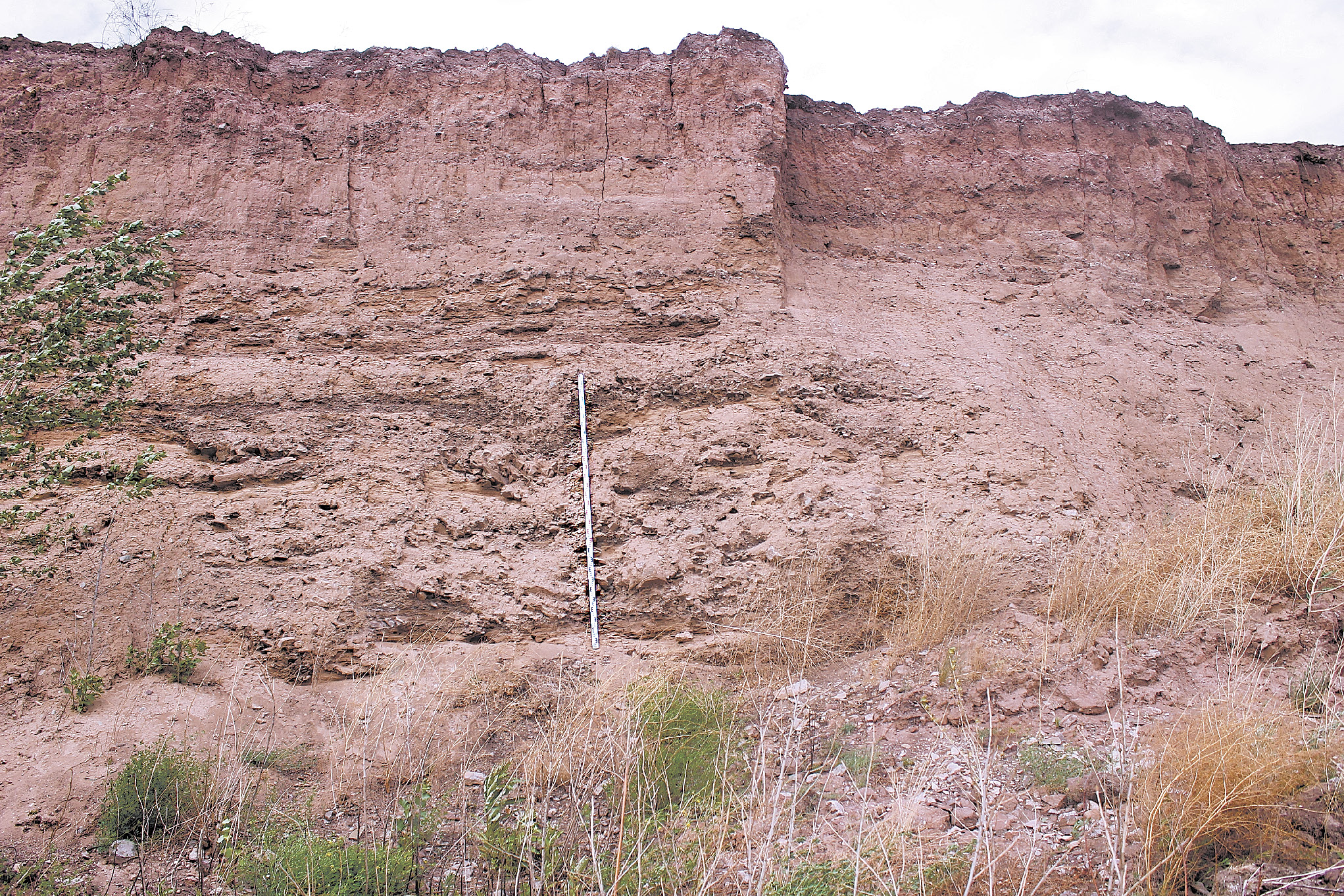 Рис. 2. Вид на II надпойменную террасу геологического разреза Уйтаг. Высота рейки 3 м
