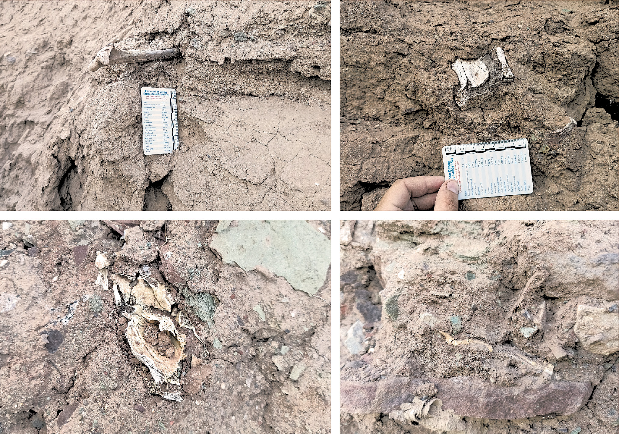 Рис. 3. Костные остатки в отложениях II надпойменной террасы в разрезе Уйтаг